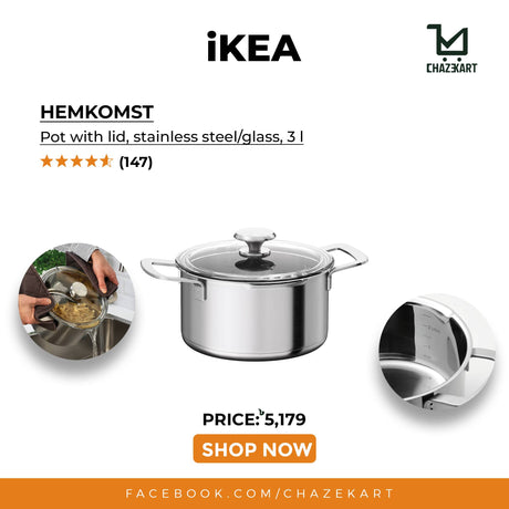 IKEA HEMKOMST Pot with lid, stainless steel/glass, 3 L