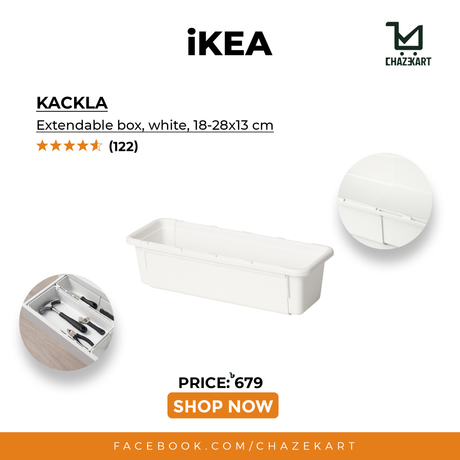 IKEA KACKLA extendable box, white, 18-28x13 cm