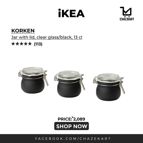 IKEA KORKEN jar with lid, clear glass/black, 13 cl