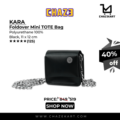 KARA Foldover Mini TOTE Bag, Black, 11x12 cm