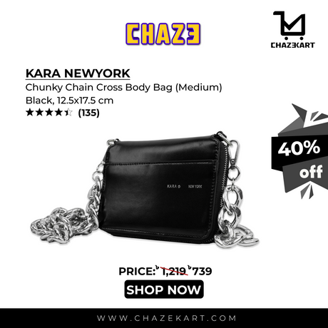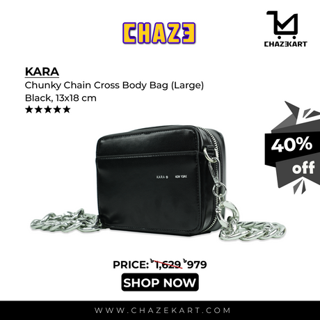 KARA Chunky Chain Cross Body Bag (Large), Black, 13x18 cm