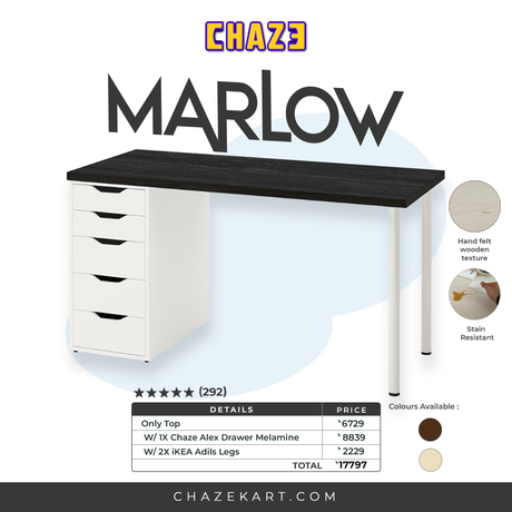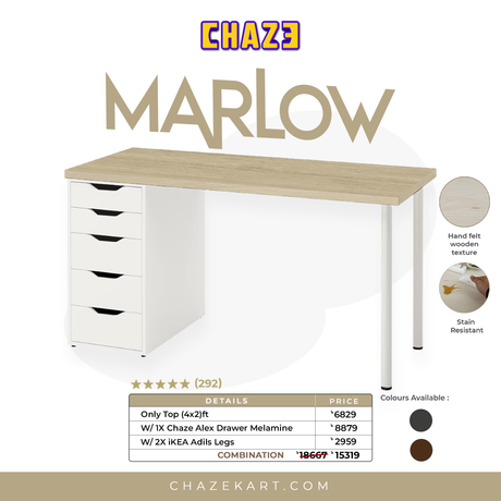 CHAZE MARLOW Table with 1x Drawer & Legs , Charcoal Wood/White/White
