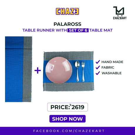 CHAZE PALAROSS set of 6 Table Runner/Mat, Grey/Blue