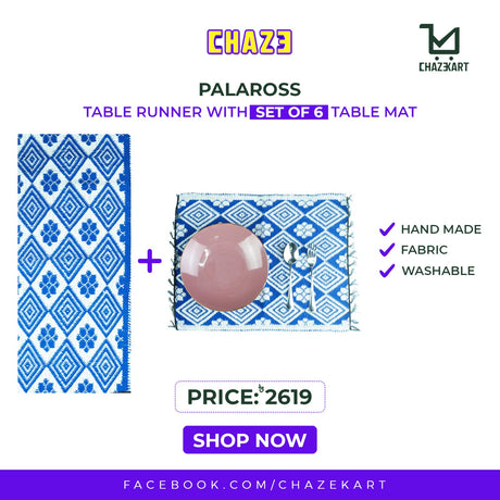 CHAZE PALAROSS set of 6 Table Runner/Mat, White/Blue