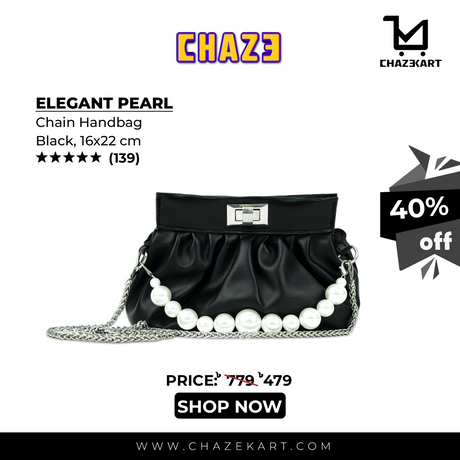 Elegant Pearl Chain Handbag, Black, 16x22 cm