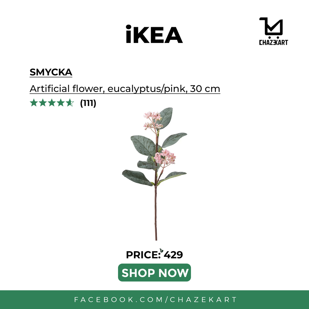 This SMYCKA Artificial flower is perfect for adding a touch of natural beauty to any space. Its lifelike design is sure to be admired by everyone who sees it. The eucalyptus/pink color lends a unique charm to any room, and the stem can easily be shortened with cutting pliers for a custom look. Add natural beauty to any room with this beautiful artificial flower.