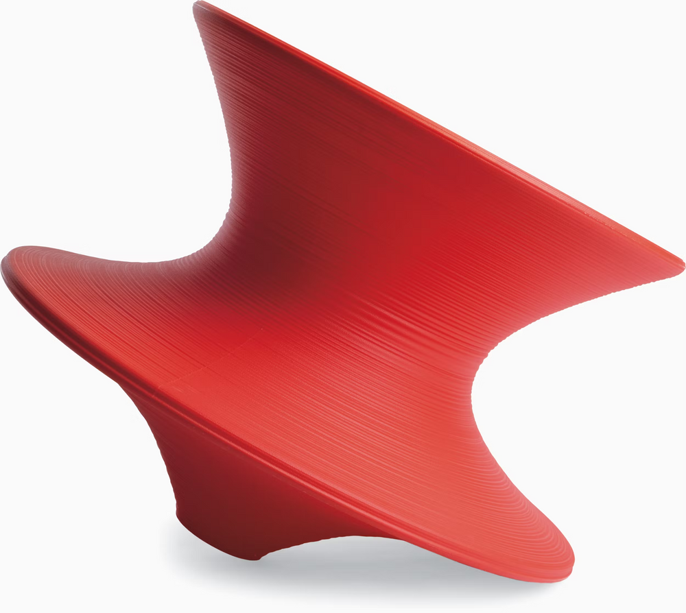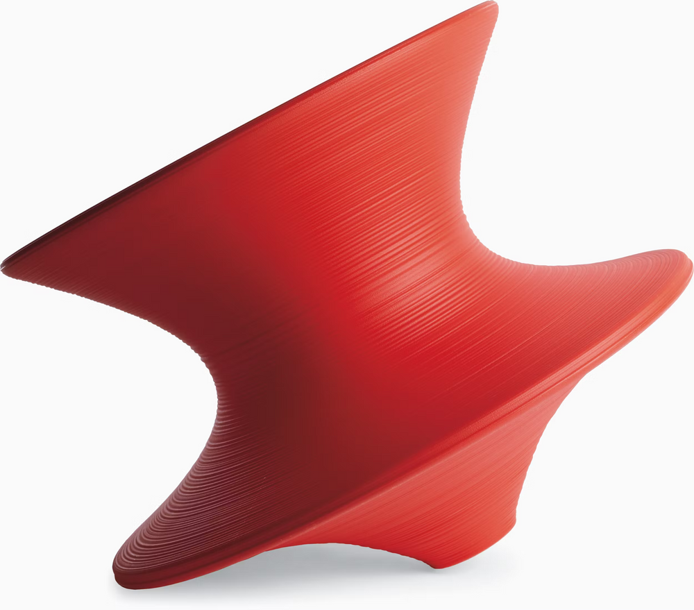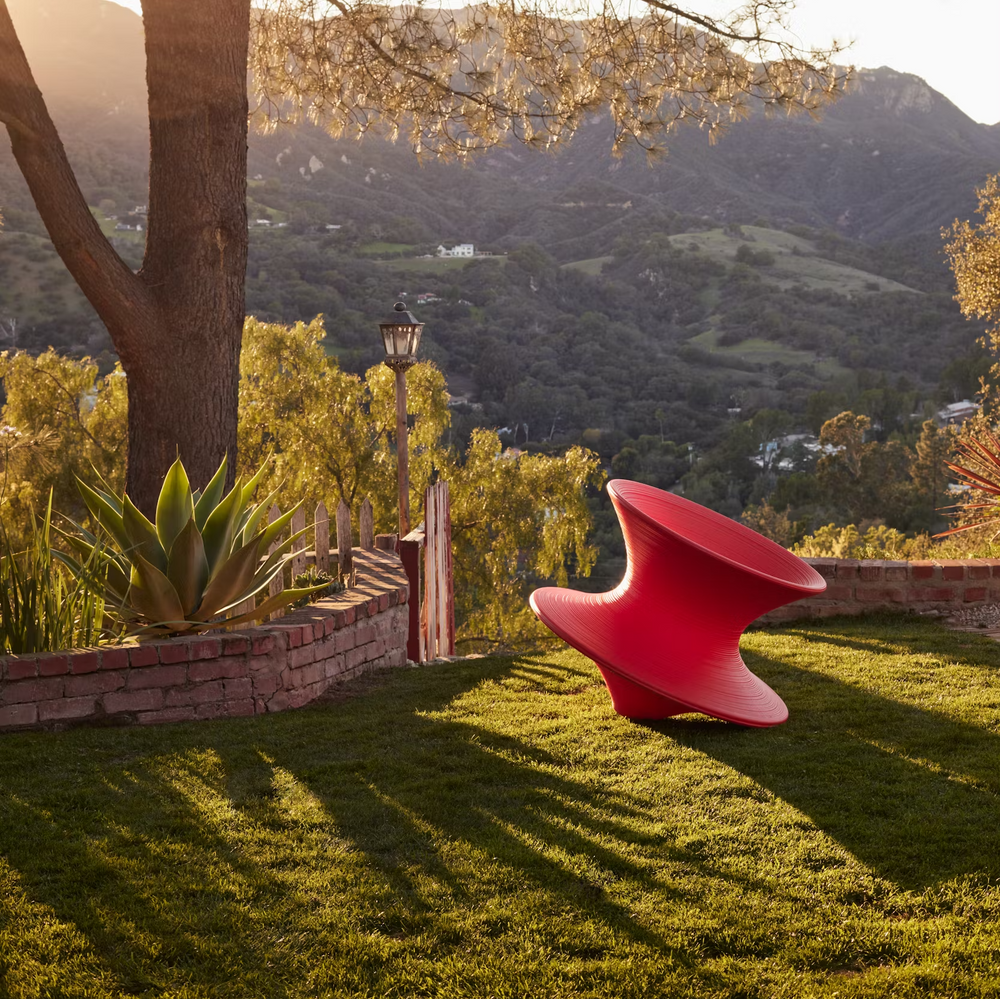 The MAGIS Spun Chair, designed by Thomas Heatherwick in 2010, features a unique rotating design. Its sculptural form encourages users to test its functionality, allowing them to sway and rotate while seated. This versatile chair offers both entertainment and utility, making it an ideal choice for outdoor settings. Constructed from polyethylene, the Spun comes in various matte colors.