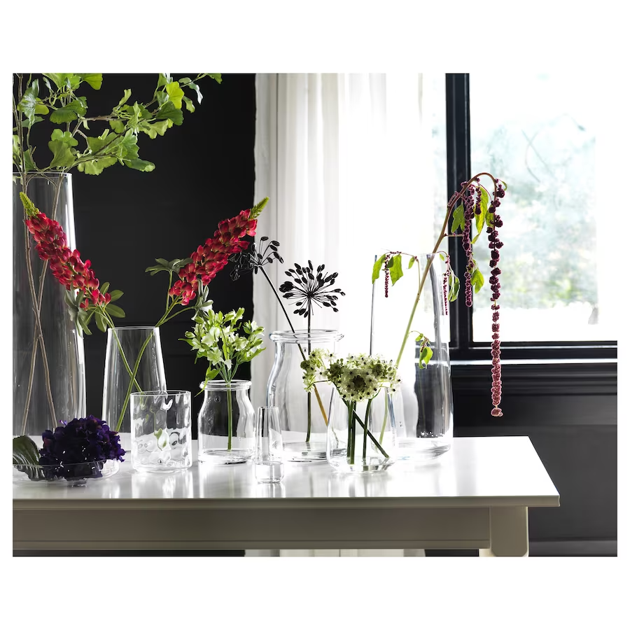 The BERAKNA bowl is expertly crafted from clear glass and measures 26 cm in diameter. A skilled craftsperson meticulously blows each bowl to perfection, resulting in a unique product with a luxurious look and feel.