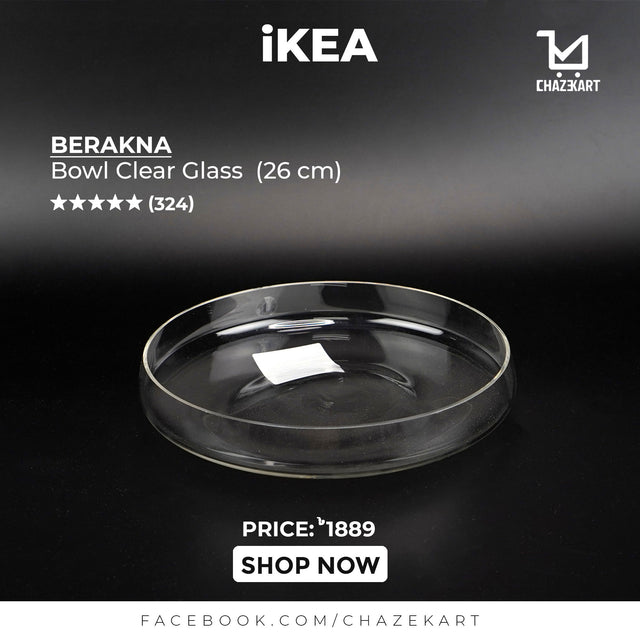 IKEA BERAKNA bowl clear glass 26 cm is backordered and will ship as soon as it is back in stock.