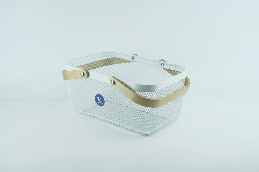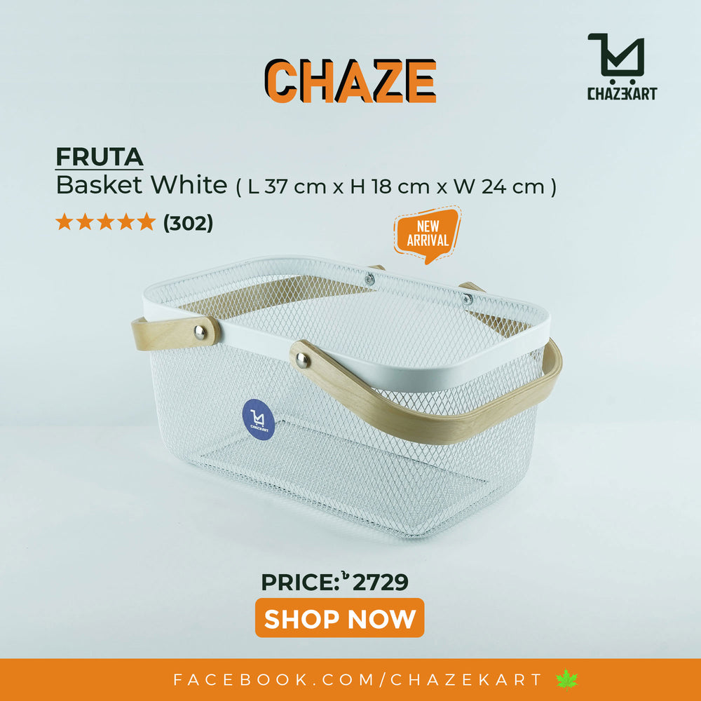 CHAZE, FRUTA Basket White 37X18X24 cm is an effective storage solution, complete with an ergonomic handle for easy portability. It is suitable for a variety of spaces, including kitchens, hallways, bedrooms, and home offices.