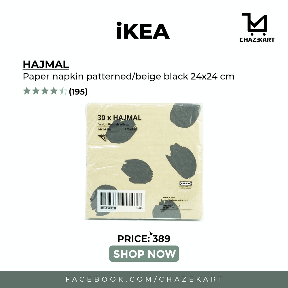 IKEA HAJMAL paper napkin patterned/beige black 24x24 cm is backordered and will ship as soon as it is back in stock.