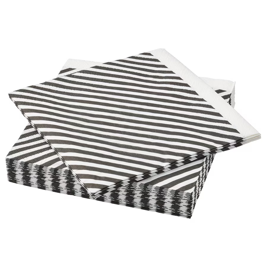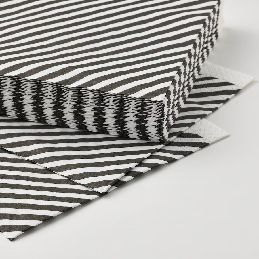 IKEA RODKNOT Paper napkin, striped white/black, 33x33 cm