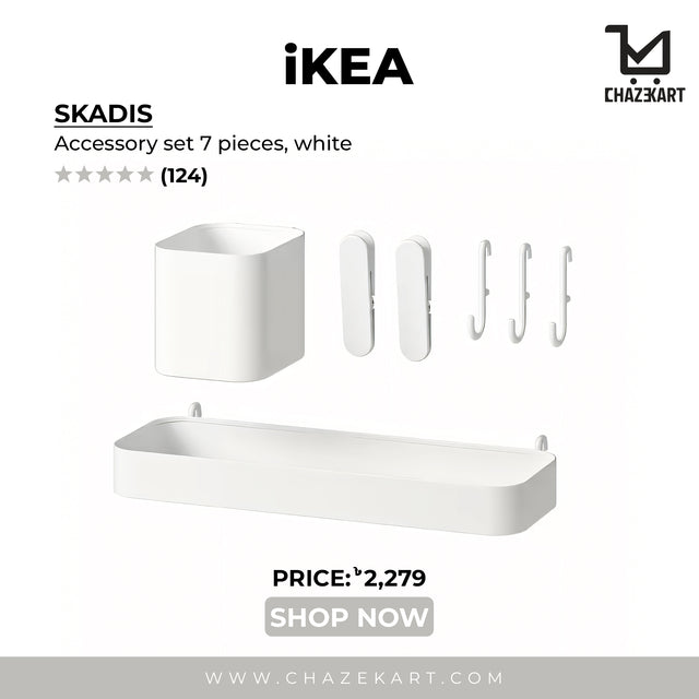 IKEA SKADIS Accessory set 7 pieces, white is backordered and will ship as soon as it is back in stock.