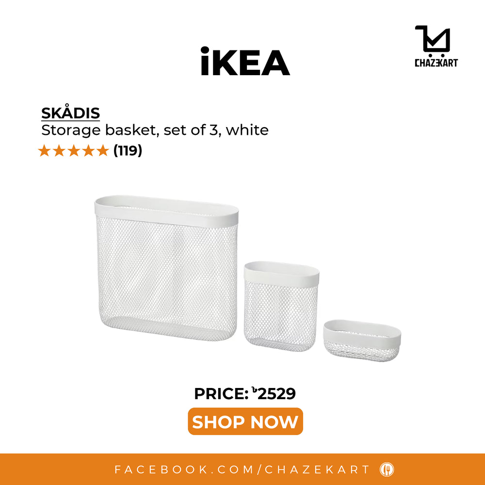 IKEA SKADIS Storage Basket, Set of 3 White is backordered and will ship as soon as it is back in stock.