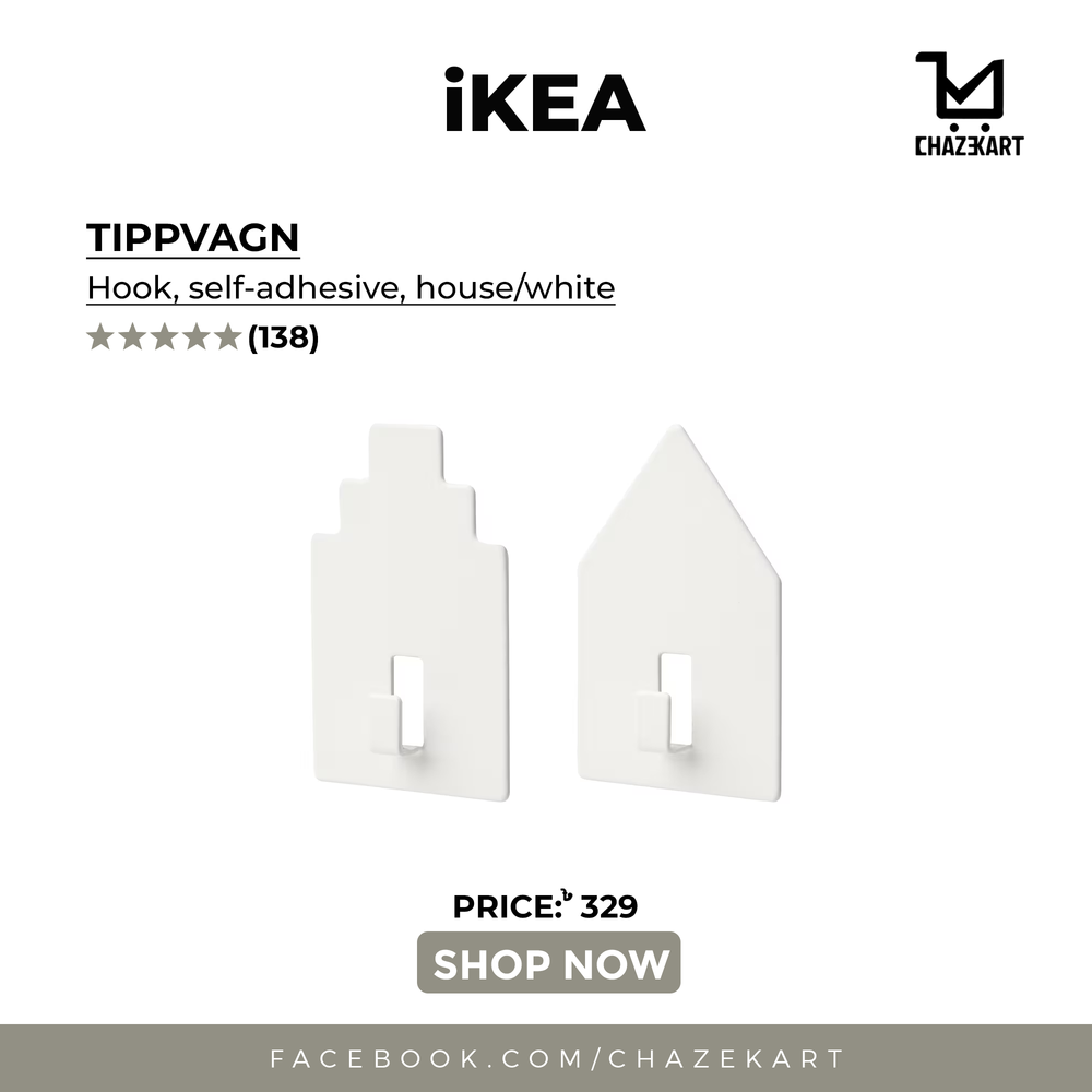 IKEA TIPPVAGN Hook, self-adhesive, house/white is backordered and will ship as soon as it is back in stock.