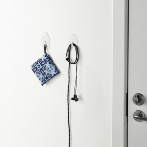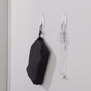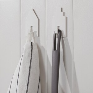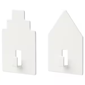 Utilize the wall as an efficient storage solution with the self-adhesive TIPPVAGN hooks. Their sleek, house-shaped design allows for hanging textiles, kitchen accessories, and other lightweight items to quickly declutter and organize your home.