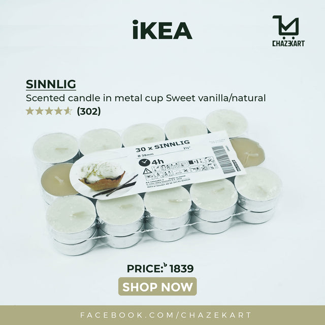 IKEA SINNLIG scented tealight Sweet vanilla/natural is backordered and will ship as soon as it is back in stock.