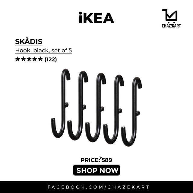 IKEA SKADIS Hook, Black, Set of 5 ( S Hook )