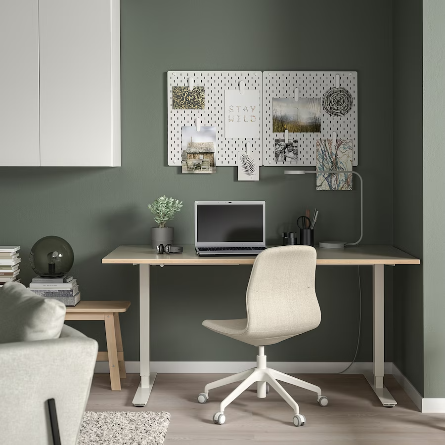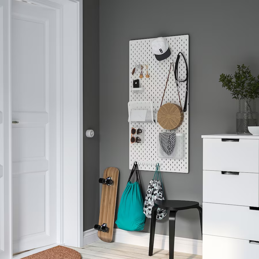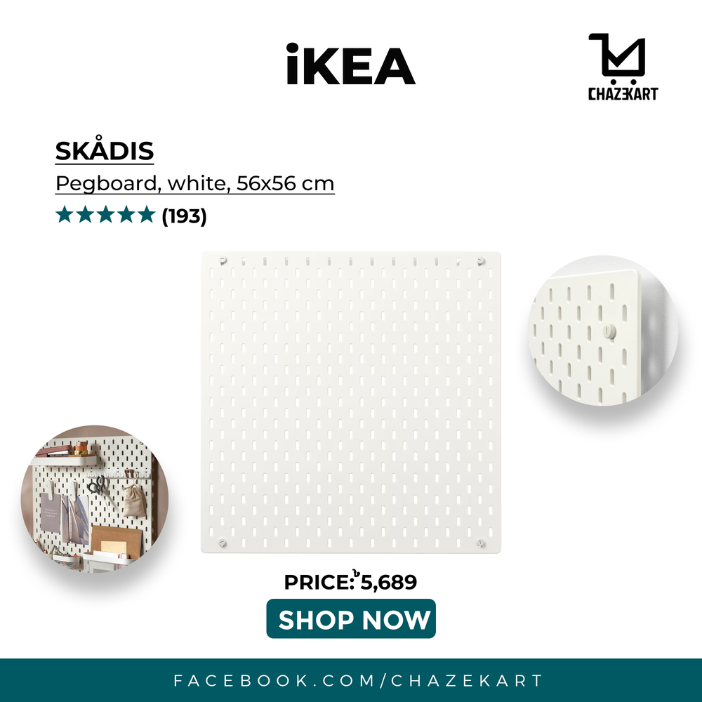 The SKADIS Pegboard is the perfect addition to any home office, but it can also be used in bathrooms, hallways, and kitchens to store and organize a variety of small items. The 56x56 cm white board comes complete with SKÅDIS accessories, giving you flexibility in organizing your items.