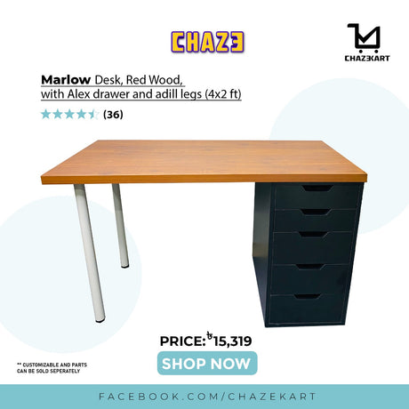 CHAZE MARLOW Table with 1x Drawer & Legs , Red Wood/Black/White