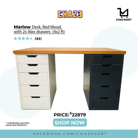 CHAZE MARLOW Table with 2x Drawers , Red Wood/White/Black