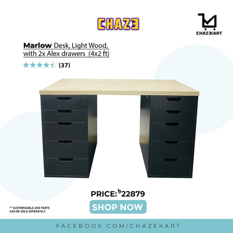 CHAZE MARLOW Table with 2x Drawers , Maple Wood/Black
