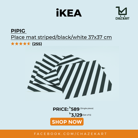 IKEA PIPIG place mat striped/black/white 37x37 cm ( Single Piece )
