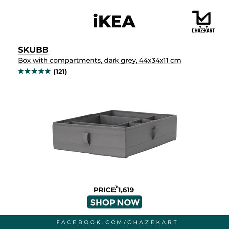 IKEA, SKUBB Box with compartments, Dark Grey, 44x34x11 cm