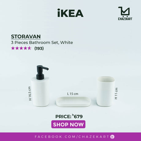 IKEA STORAVAN 3-Piece Bathroom Set, White