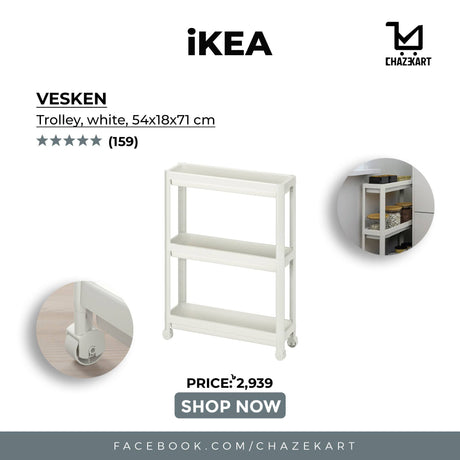 IKEA, VESKEN Trolley White 54x18x71 cm