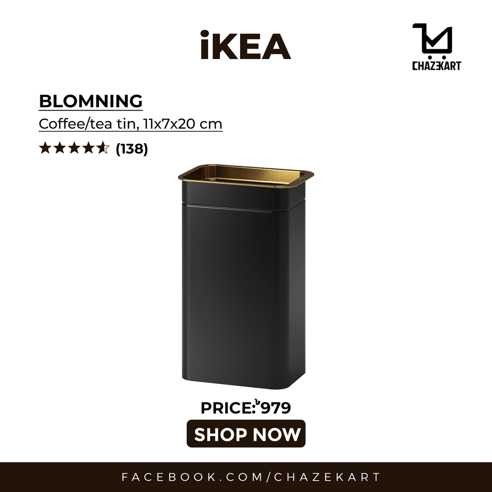 IKEA BLOMNING Coffee/tea tin, 11x7x20 cm is backordered and will ship as soon as it is back in stock.