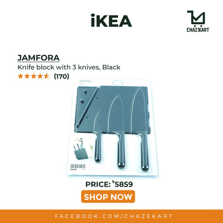 IKEA, JAMFORA Knife Block with 3 Knives Black