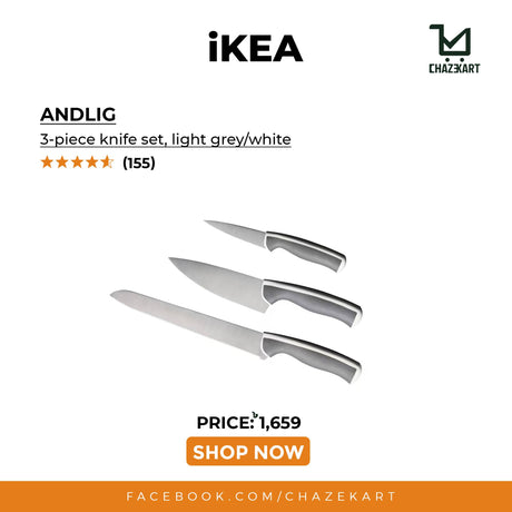 IKEA, ANDLIG 3-piece knife set light grey/white