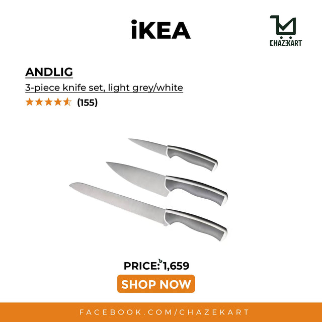 IKEA, ANDLIG 3-piece knife set light grey/white is backordered and will ship as soon as it is back in stock.