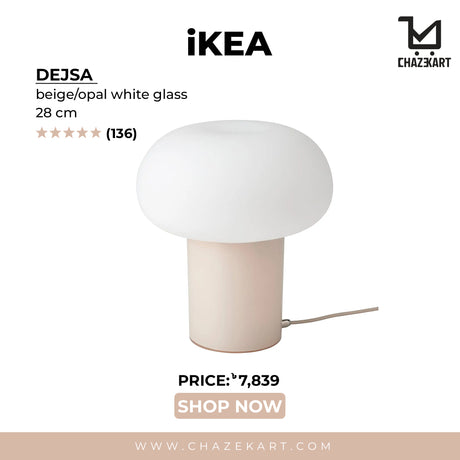 IKEA DEJSA table lamp, beige/opal white glass, 28 cm