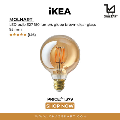 MOLNART LED bulb E27 150 lumen, globe brown clear glass, 95 mm