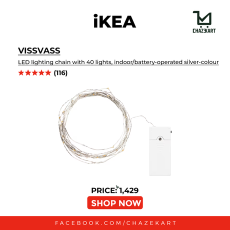 IKEA VISSVASS LED lighting chain with 40 lights, indoor/battery-operated silver-colour