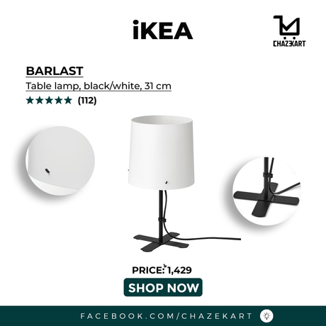 IKEA BARLAST Table lamp, black/white, 31 cm