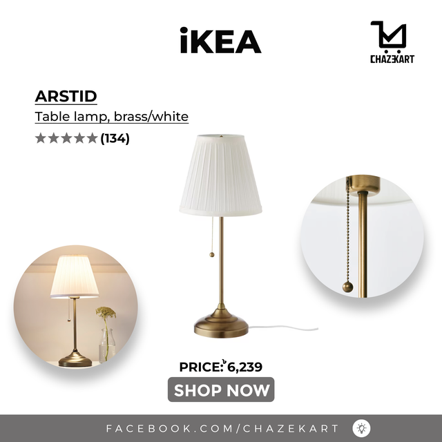 IKEA ARSTID Table lamp, brass/white is backordered and will ship as soon as it is back in stock.