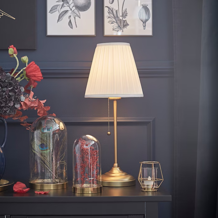 IKEA ARSTID Table lamp, brass/white