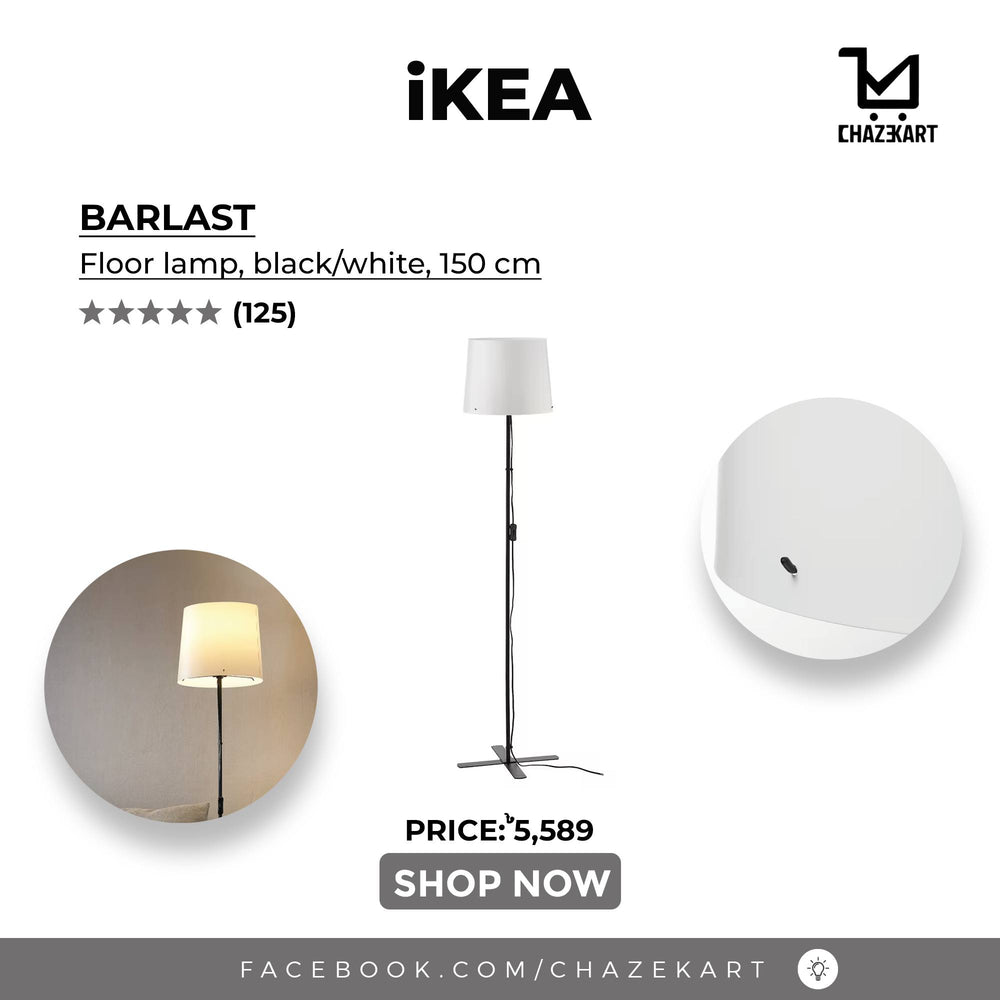 IKEA BARLAST Floor lamp, black/white, 150 cm is backordered and will ship as soon as it is back in stock.