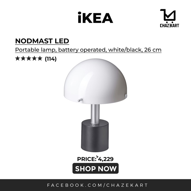 IKEA NODMAST LED portable lamp, battery operated, white/black, 26 cm is backordered and will ship as soon as it is back in stock.