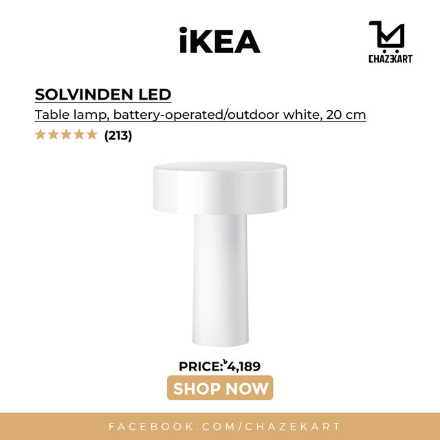 IKEA SOLVINDEN LED table lamp, battery-operated/outdoor white, 20 cm is backordered and will ship as soon as it is back in stock.