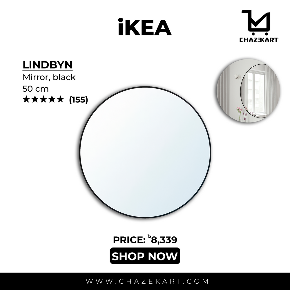 IKEA LINDBYN Mirror, black, 50 cm is backordered and will ship as soon as it is back in stock.