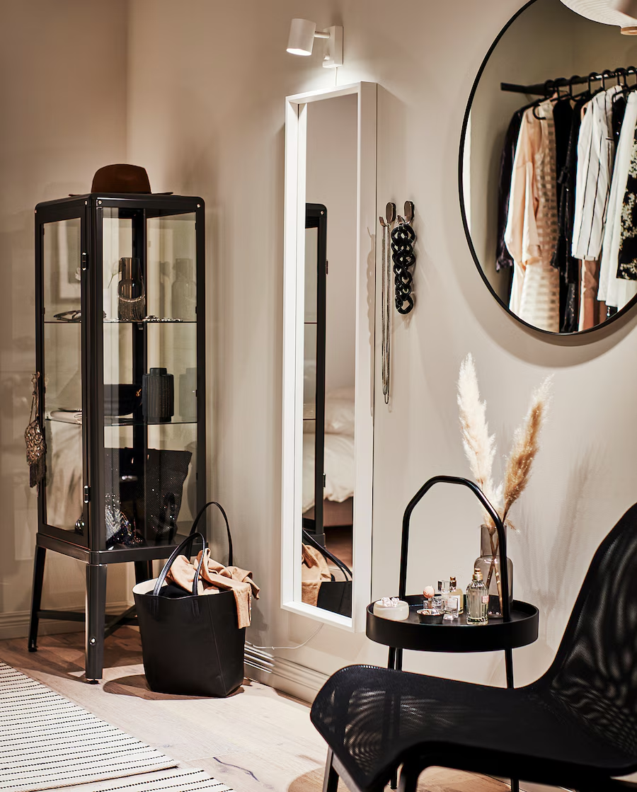 Enhance the ambience of your space with mirrors, bringing dimension and vitality into your surroundings. The LINDBYN circular mirror exudes a refined aesthetic with its sleek black frame and sophisticated design.
