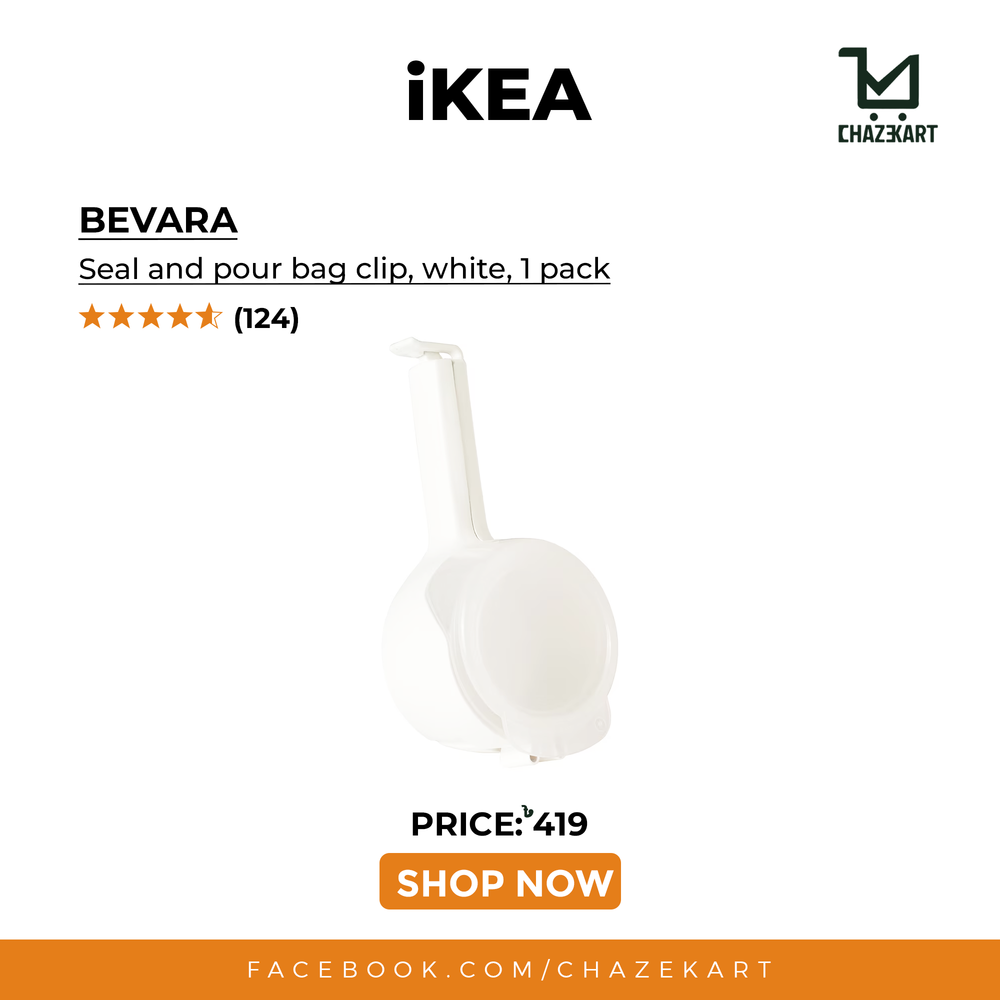 IKEA BEVARA Seal and pour bag clip, white, 1 pack is backordered and will ship as soon as it is back in stock.