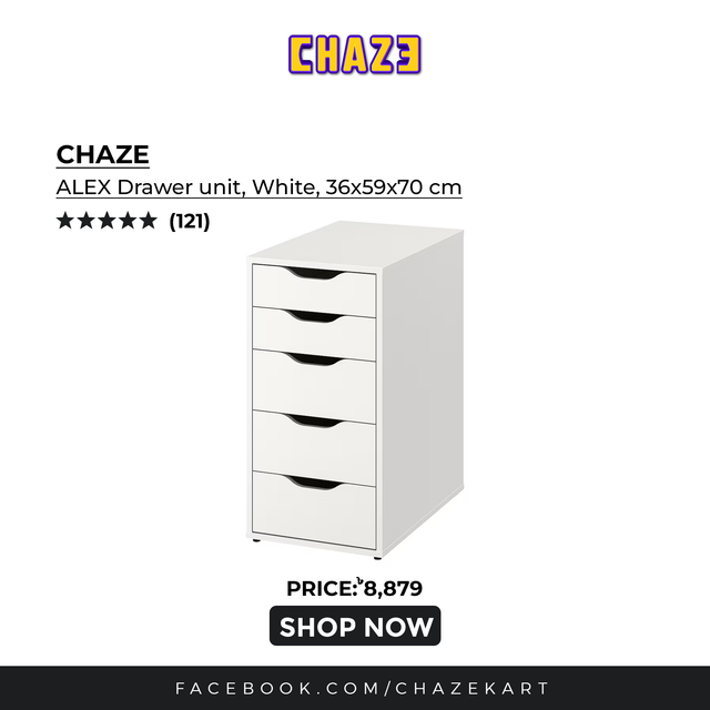 CHAZE ALEX Drawer unit, White, 36x59x70 cm is backordered and will ship as soon as it is back in stock.