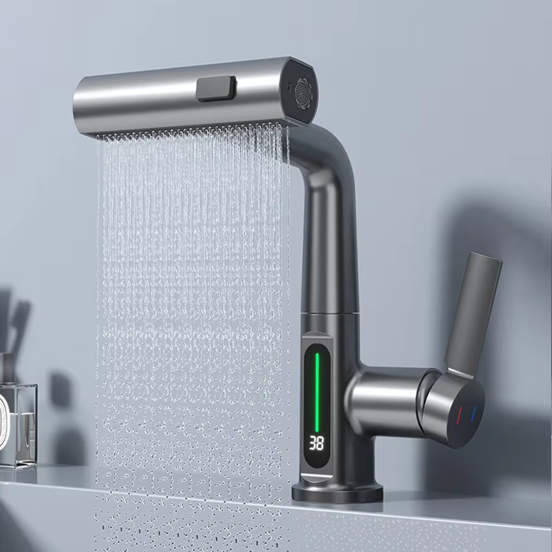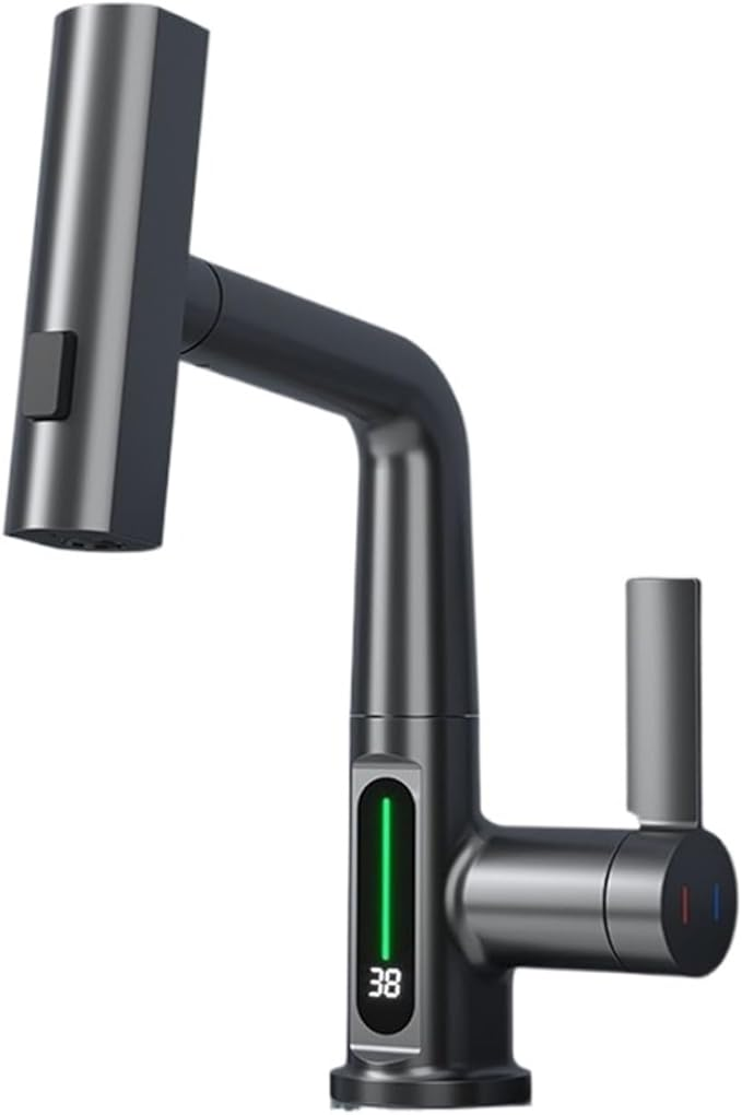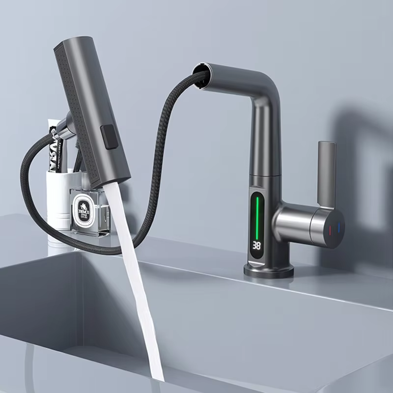 Elevate your bathroom or kitchen experience with our state-of-the-art Pull Type Faucet, featuring an innovative digital temperature display. This faucet blends cutting-edge technology with a sleek design, offering functionality and style.