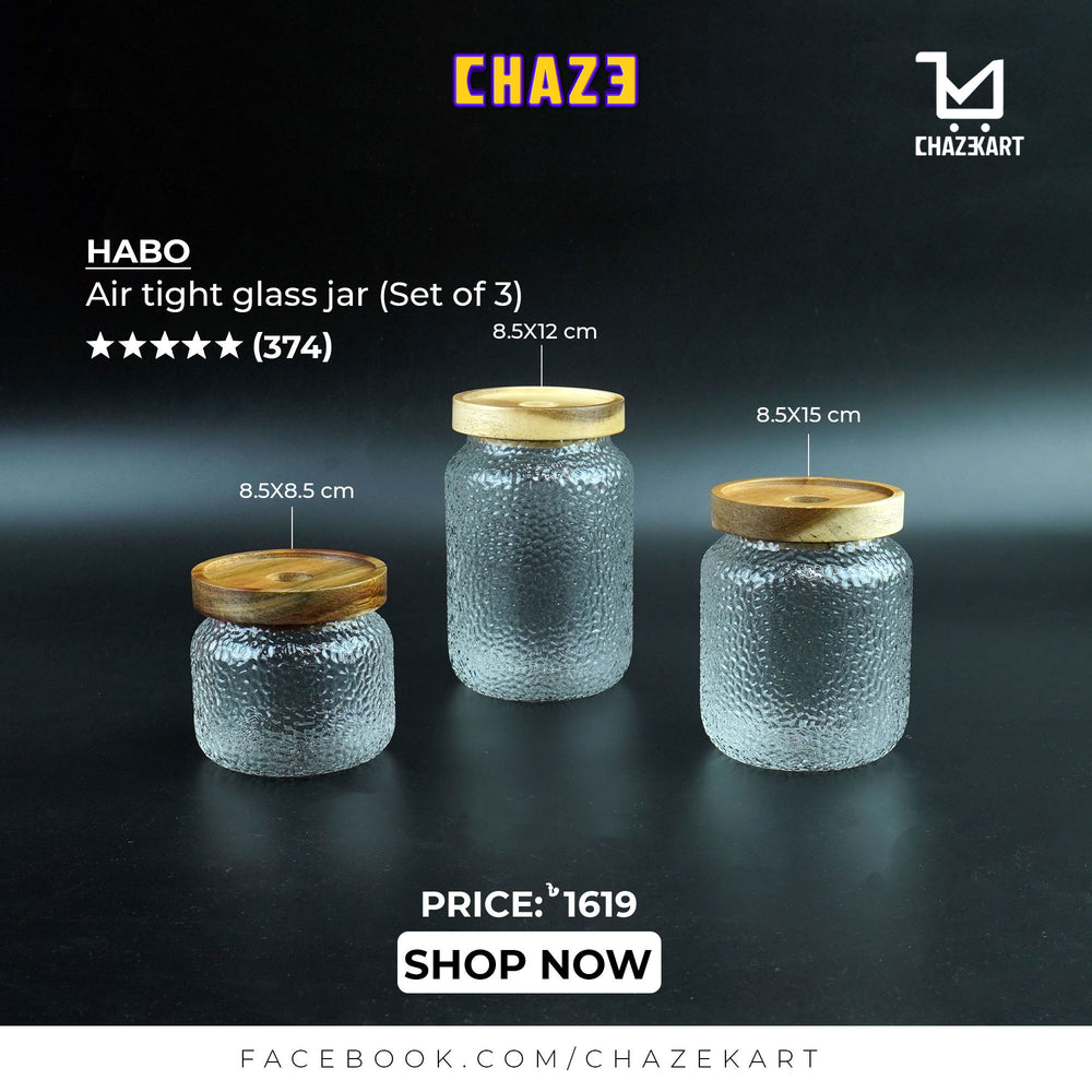 CHAZE HABO Air Tight Glass Jar set of 3 is backordered and will ship as soon as it is back in stock.