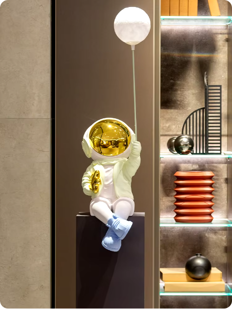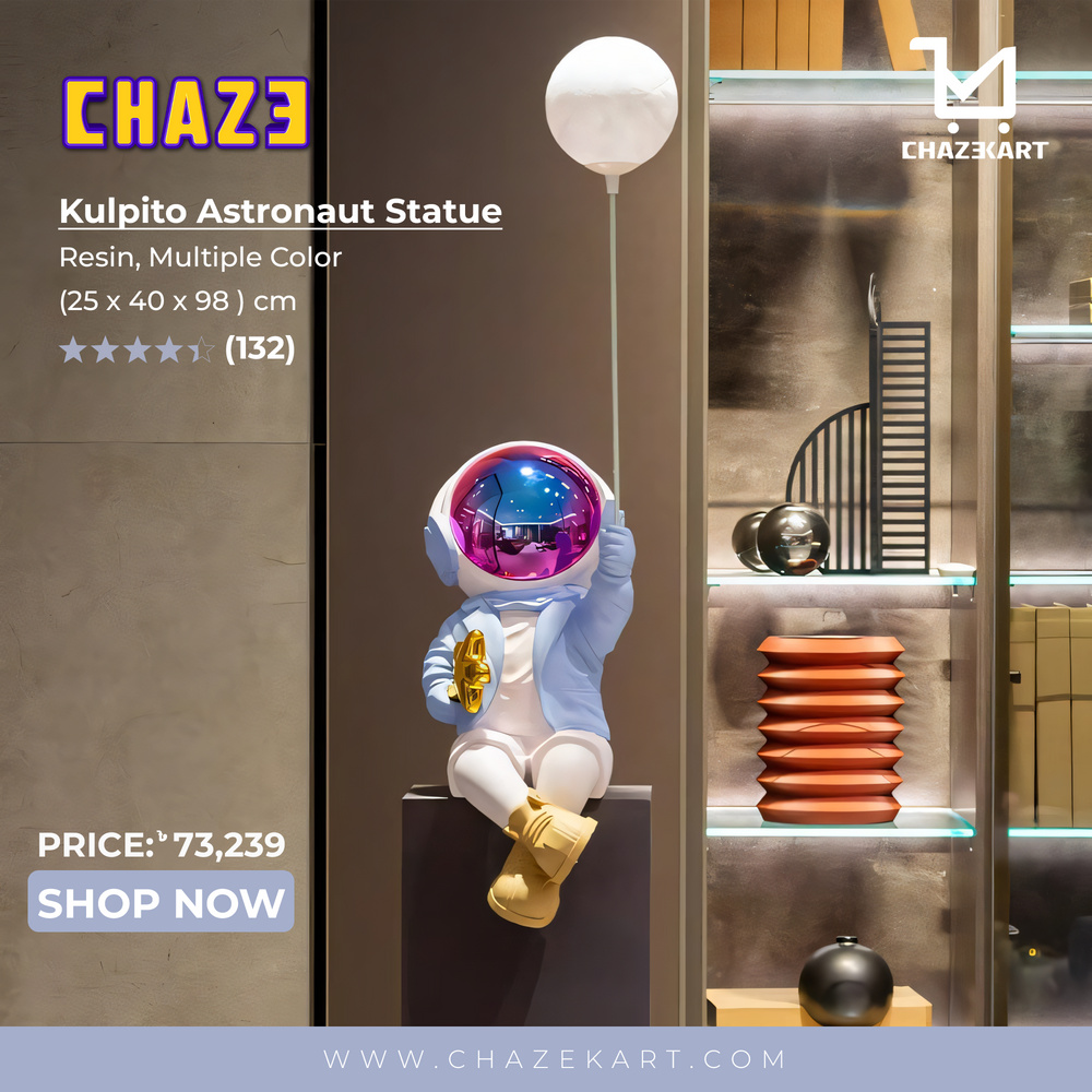 Add a touch of sophistication to your space with the Chaze Kulpito astronaut statue. This luxurious home decoration, from the exclusive Kulpito series, is crafted from high-quality resin and features a multifunctional base. Elevate your decor with this elegant and tasteful handcrafted piece.